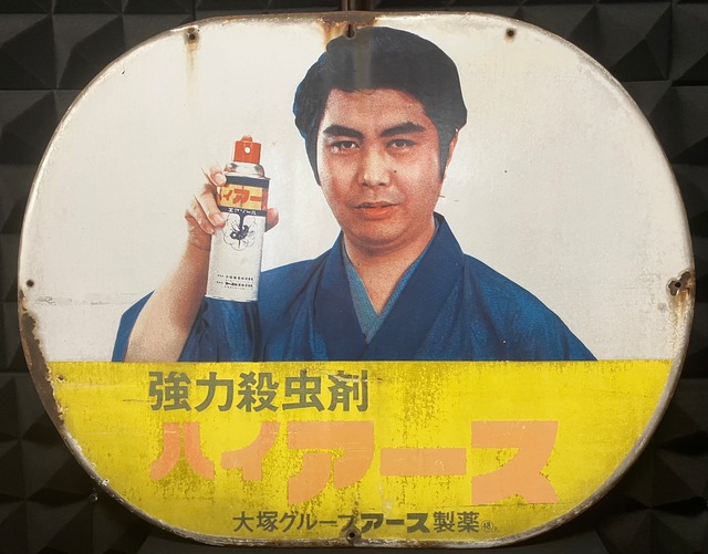 ホーロー看板 強力殺虫剤ハイアース アース製薬(楕円型)(色落ち・錆多め・汚れあり)【Japanese Vintage enamel sign】