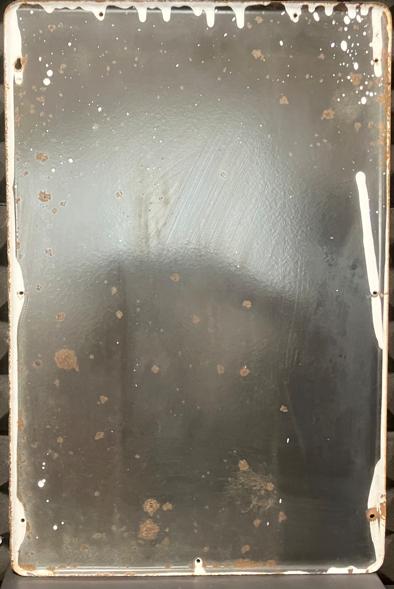 このホーロー看板は1995年前後に収集し以来長期室内保管していました。