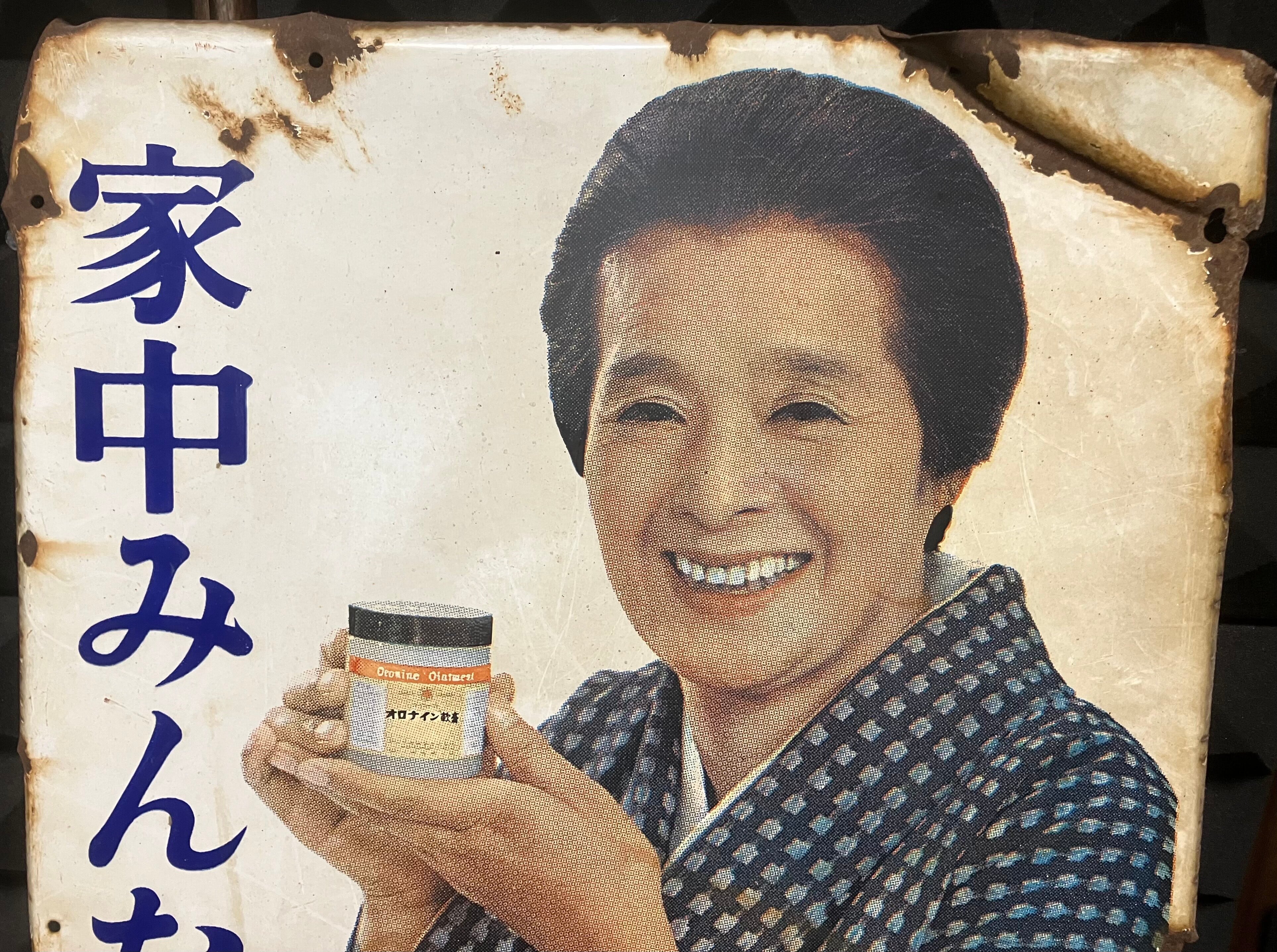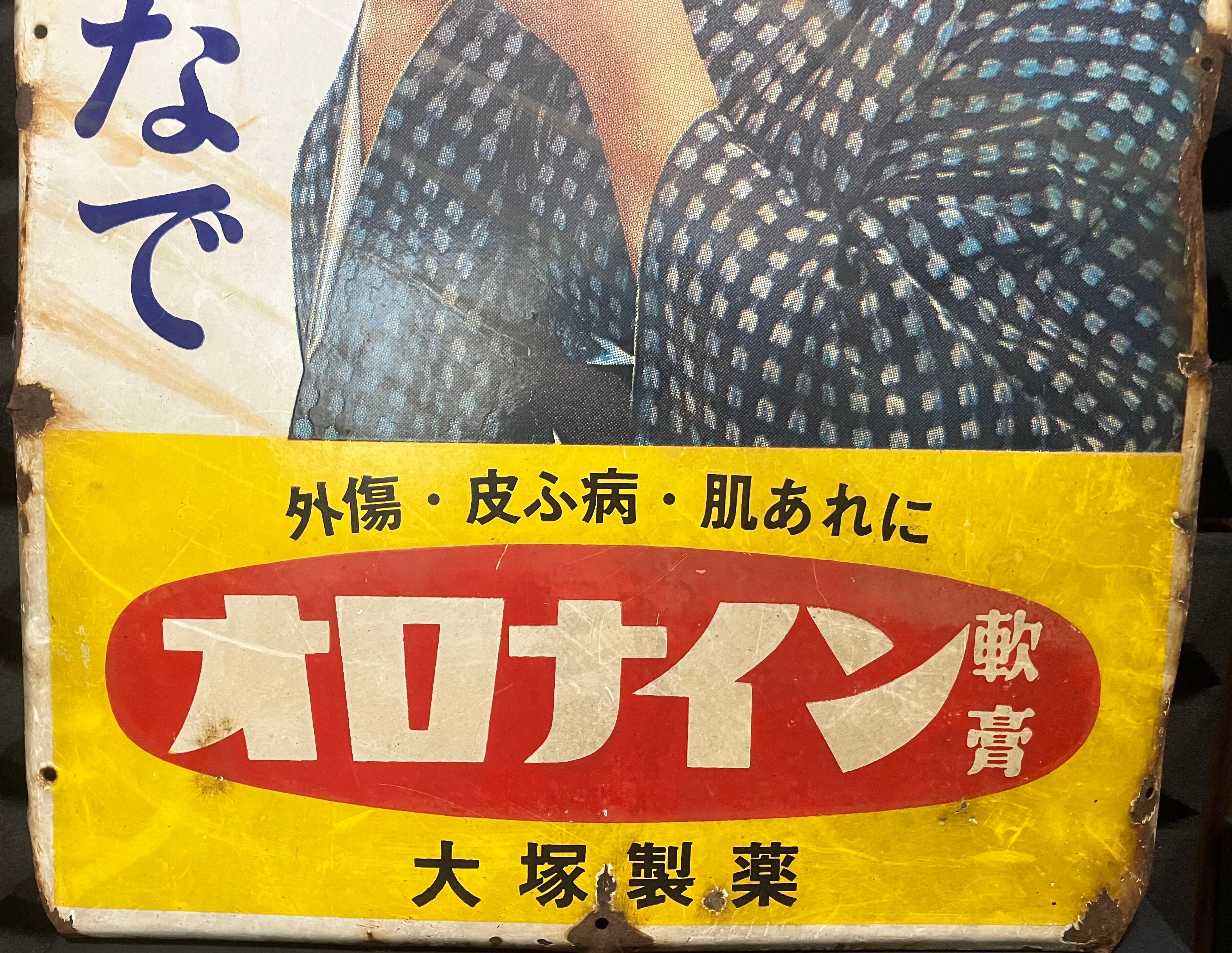 ホーロー看板 オロナイン軟膏 大塚製薬(前期型 変形・錆多し)【Japanese Vintage enamel sign】