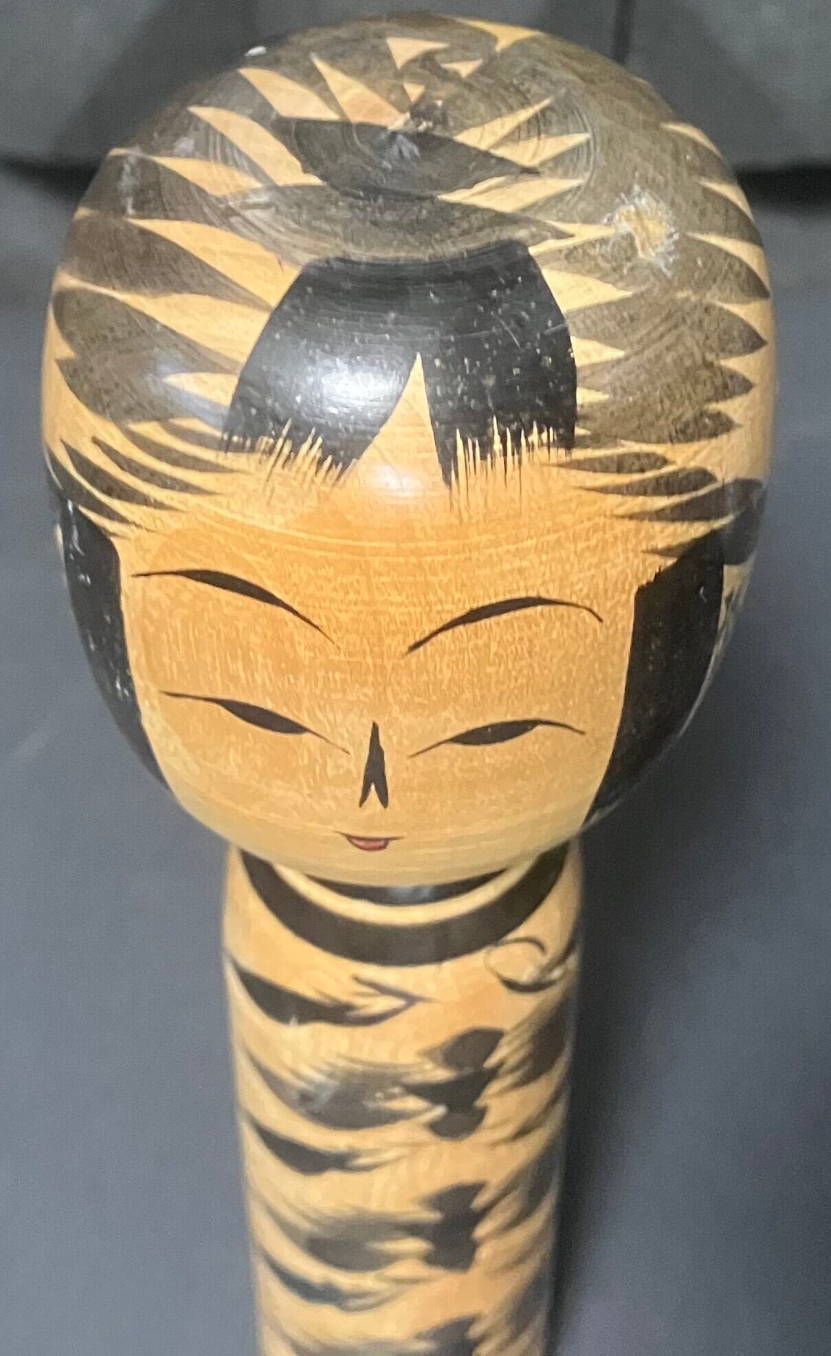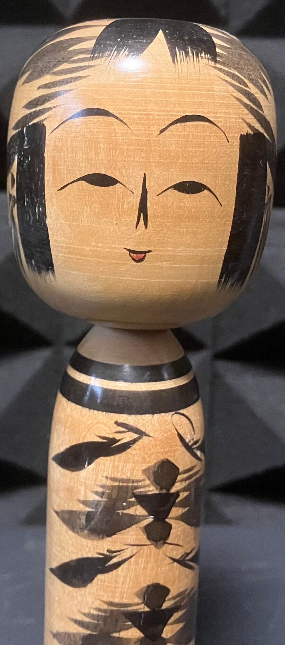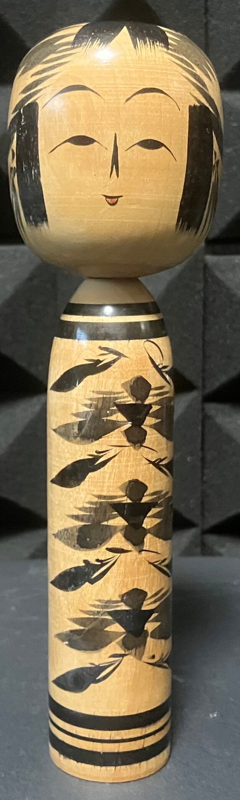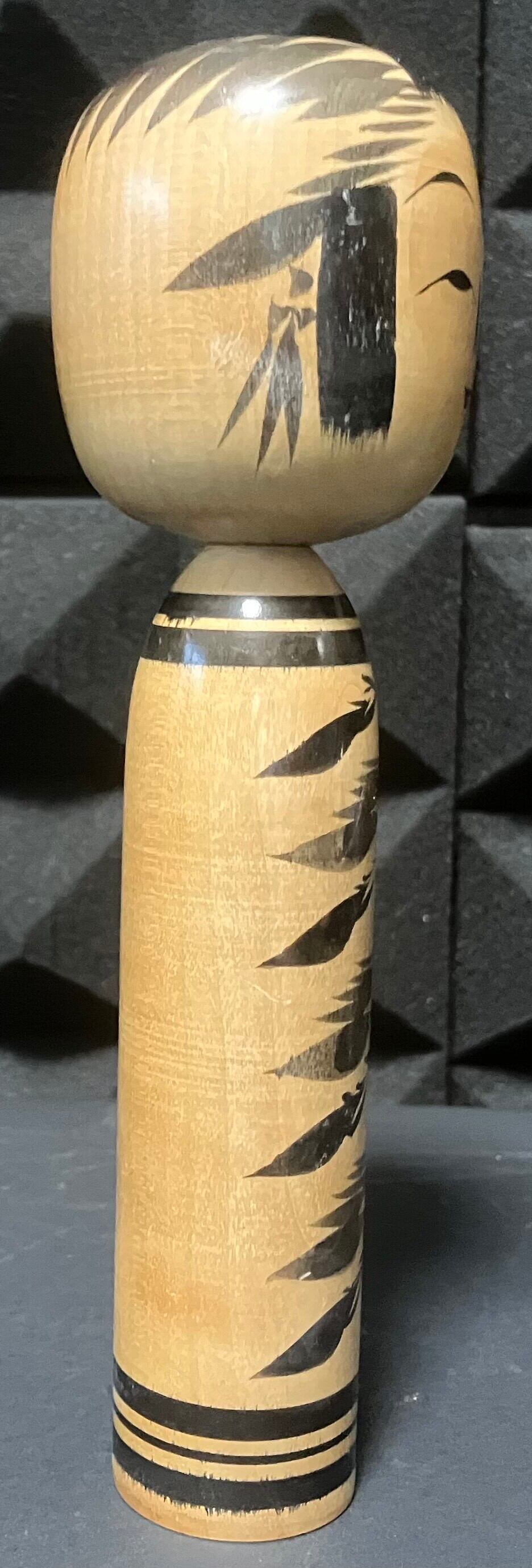 昭和レトロ 墨絵こけし 遠刈田系(工人 不明確)【Vintage Kokeshi doll】
