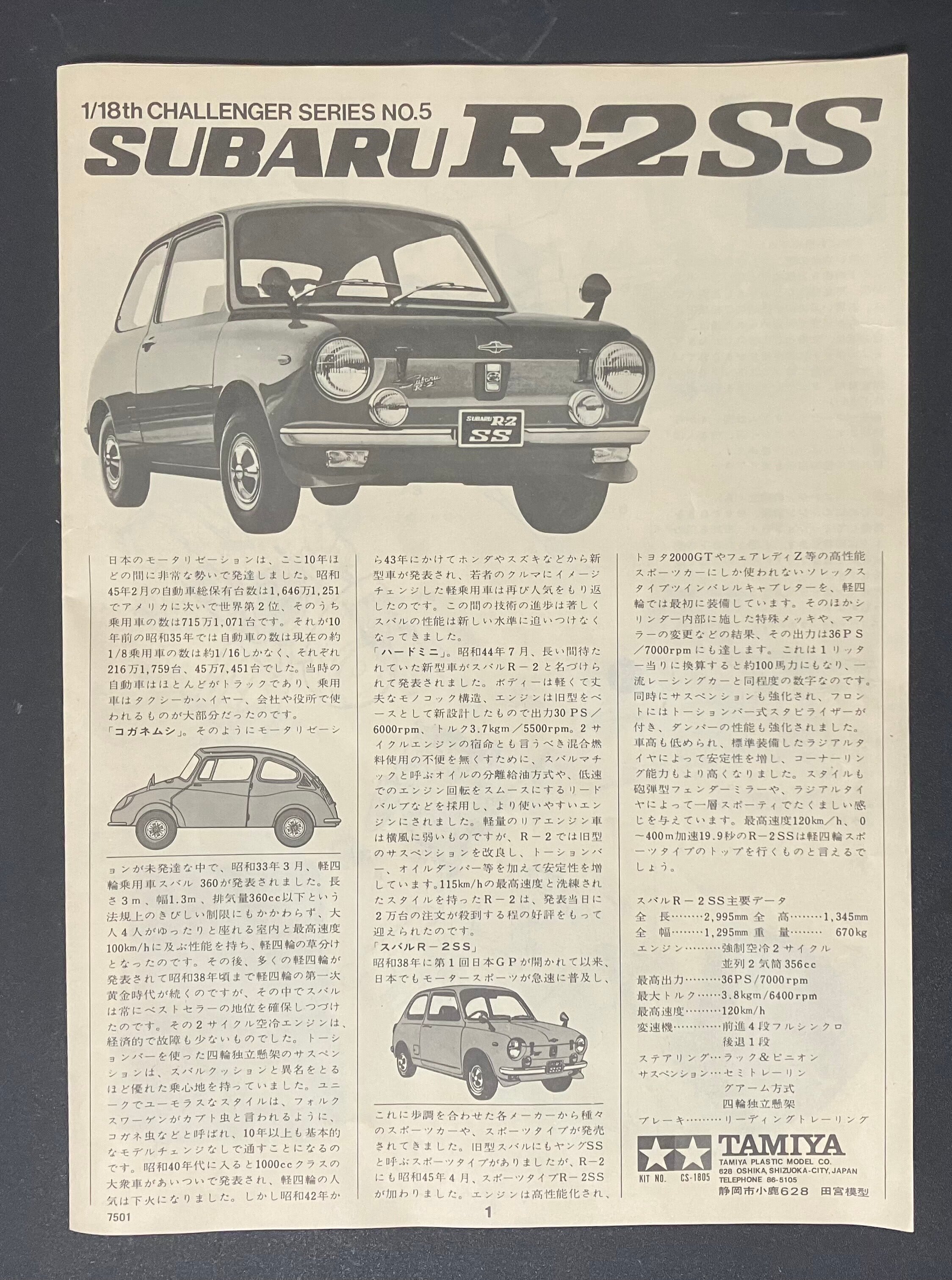 タミヤ スバルR-2 SS 1/18チャレンジャーシリーズNo5 未組立プラモデル【SUBARU R-2 SS, Unbuilt plastic model】