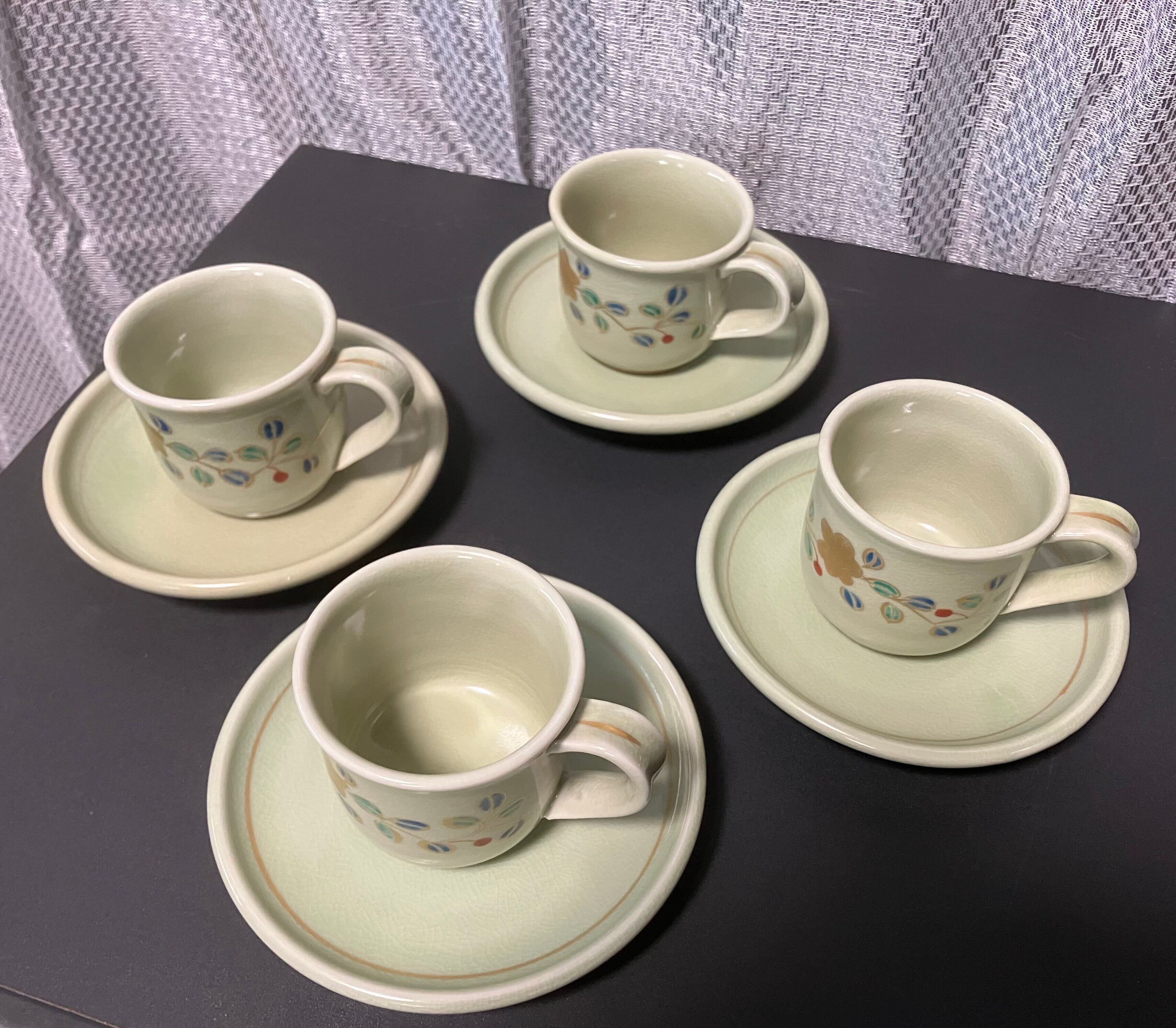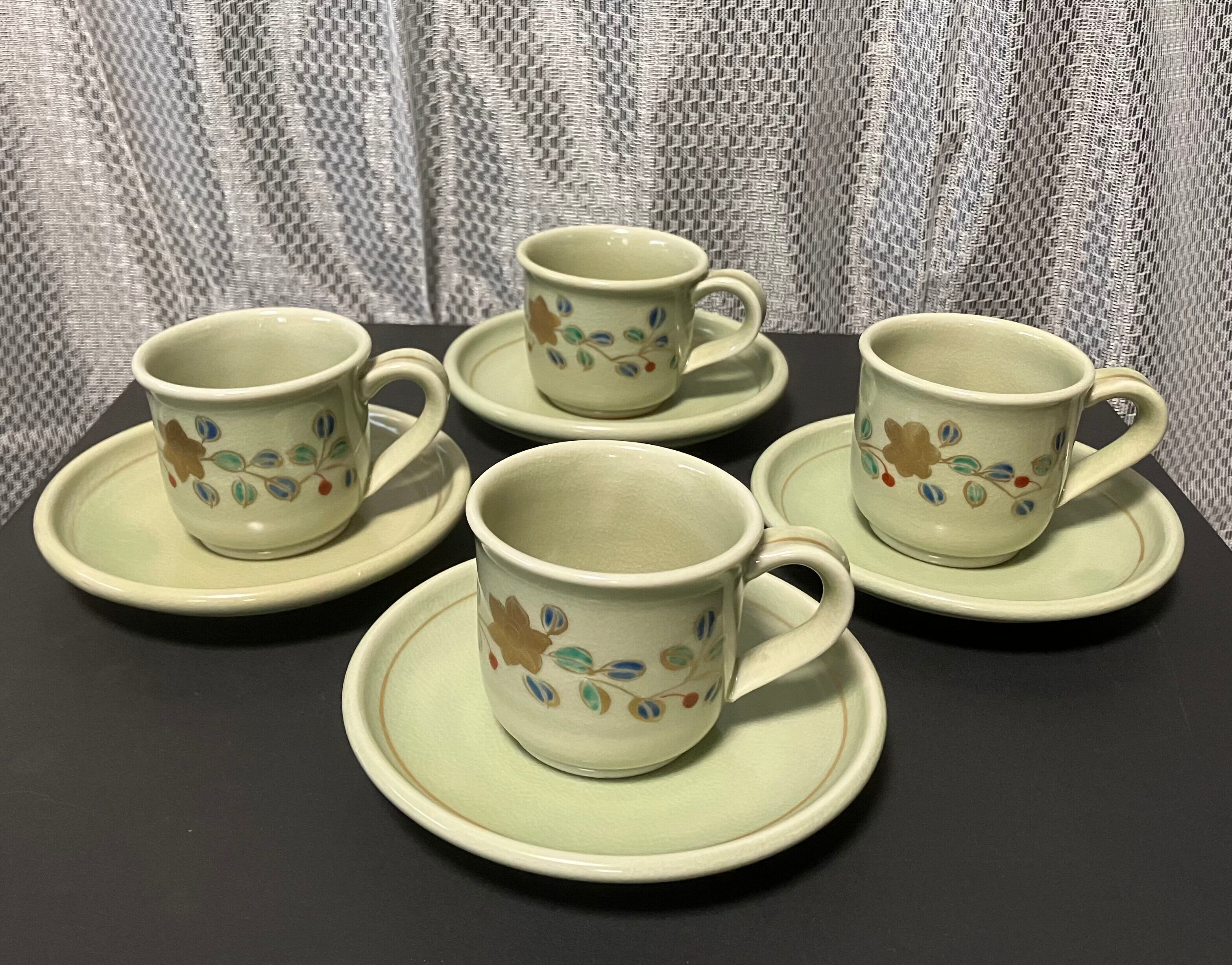 九谷焼 錦生 コーヒーカップとお皿セット 4客