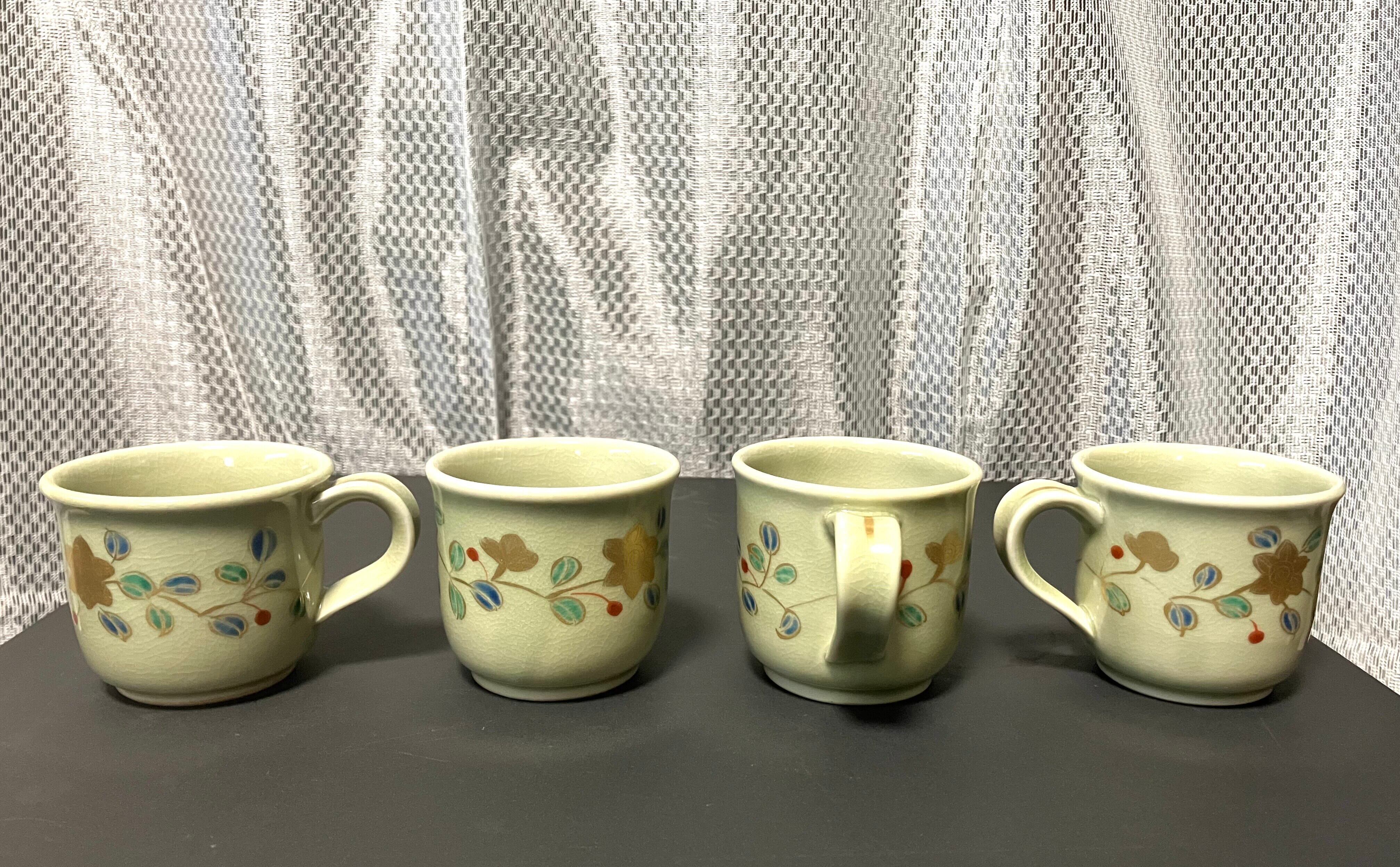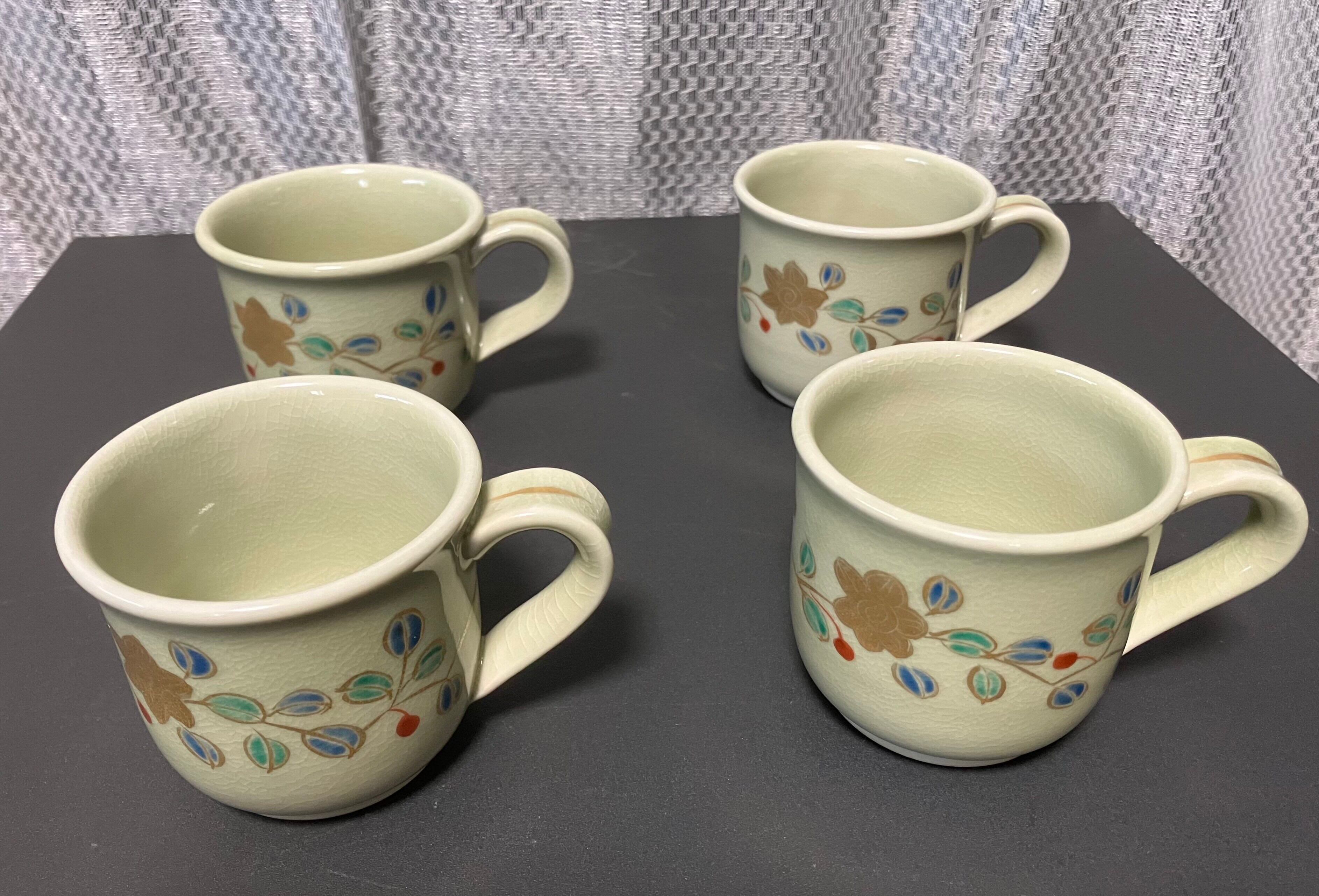 九谷焼 錦生 コーヒーカップとお皿セット 4客【Kutani Japanese Coffee cup and saucer set】