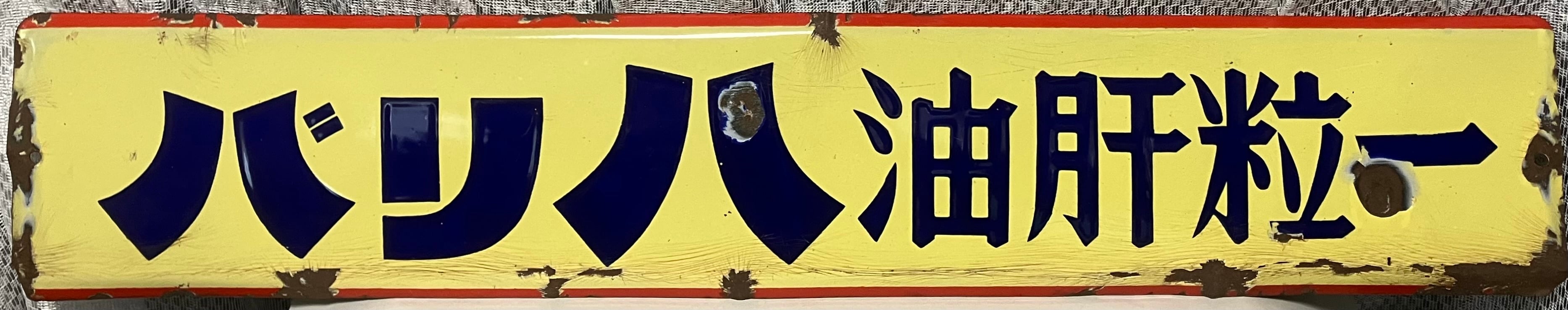 ホーロー看板 一粒肝油ハリバ(貴重な右読み看板)【Japanese Vintage enamel sign】