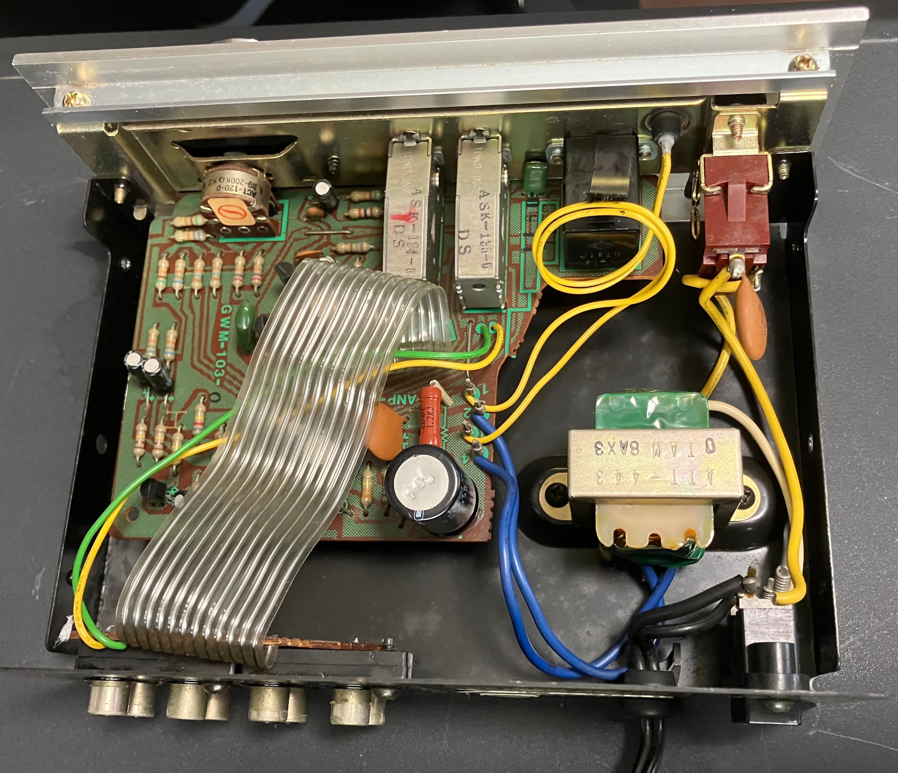 入出力用の各RCAピンプラグは経年による汚れやくすみがあります。洗浄処理を実施しましたが、ケーブル接続で接触不良になる場合があります。プラグを抜き差ししたり少し回すなどすると改善します。